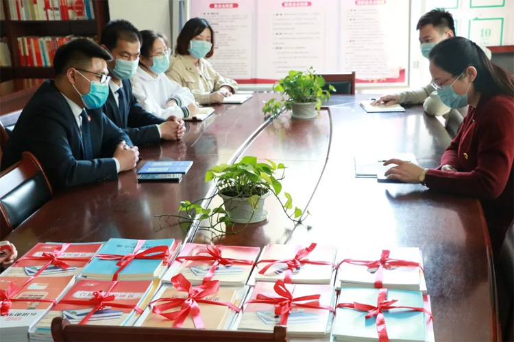 贈(zèng)書儀式上,大智臨沂區(qū)域團(tuán)總支書記于雙青代表臨沂區(qū)域向沂州社區(qū)捐贈(zèng)大智公開課、大智教研書籍50余套以及各類學(xué)習(xí)資料 。