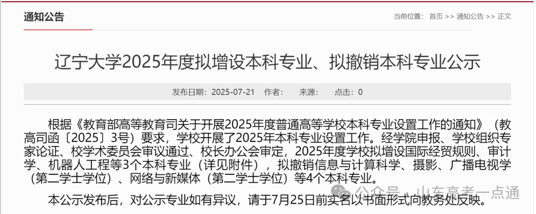 近日,遼寧大學(xué)、福建師范大學(xué)、江西農(nóng)業(yè)大學(xué)、西安郵電大學(xué)相繼發(fā)布關(guān)于2025年度調(diào)整本科專業(yè)情況的公示。遼寧大學(xué)7月21日,遼寧大學(xué)發(fā)布《2...