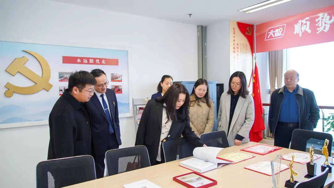 參觀黨員活動(dòng)室,翻閱查看大智黨建相關(guān)資料。