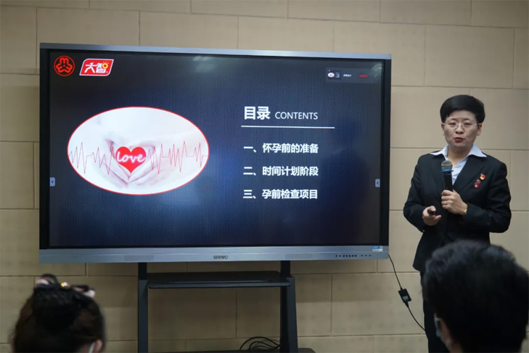 課堂上,孕前指導(dǎo)學(xué)校的組織者——大智控股集團(tuán)黨委書(shū)記、婦聯(lián)主席王現(xiàn)芹從“懷孕前的準(zhǔn)備”“時(shí)間計(jì)劃階段”“孕前檢查項(xiàng)目”三個(gè)方面為大家?guī)?lái)了詳細(xì)的孕前知識(shí)解讀,同時(shí)結(jié)合自身經(jīng)歷,現(xiàn)場(chǎng)為員工們進(jìn)行答疑解惑。