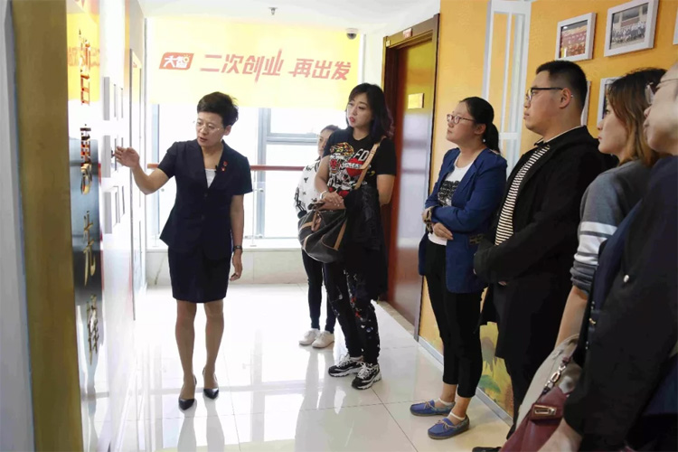 考察中,王現(xiàn)芹帶領(lǐng)大家參觀了大智教育集團(tuán)黨建陣地,介紹了大智“智惠黨建一三九”工作模式、所開展的黨建系列活動(dòng)、大智“一帶一促”群團(tuán)建設(shè)理念和“智惠+”群團(tuán)建設(shè)模式。